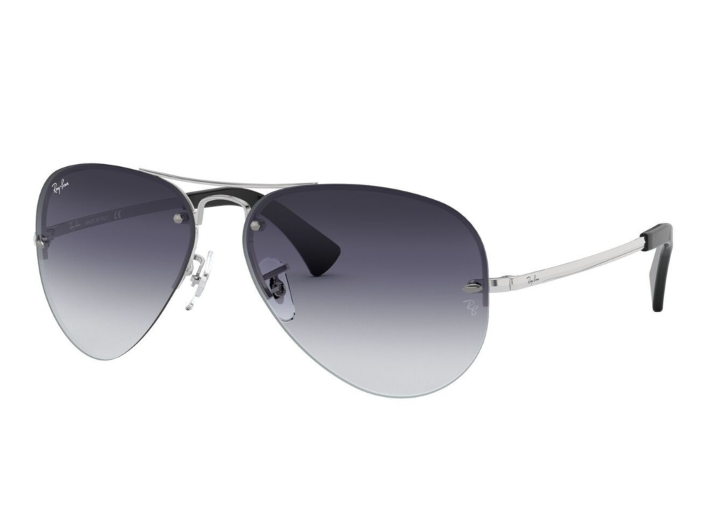 نظارة شمسية راي بان Aviator RB 3449 003/8G خيار مثالي للرجل العصري الباحث عن الأناقة مع الراحة. تأتي بتصميم افييتور كلاسيكي بإطار معدني فضي لامع يمنح لمسة فاخرة، مع عدسات رمادية مدرجة توفر حماية عالية من أشعة الشمس مع وضوح مميز للرؤية