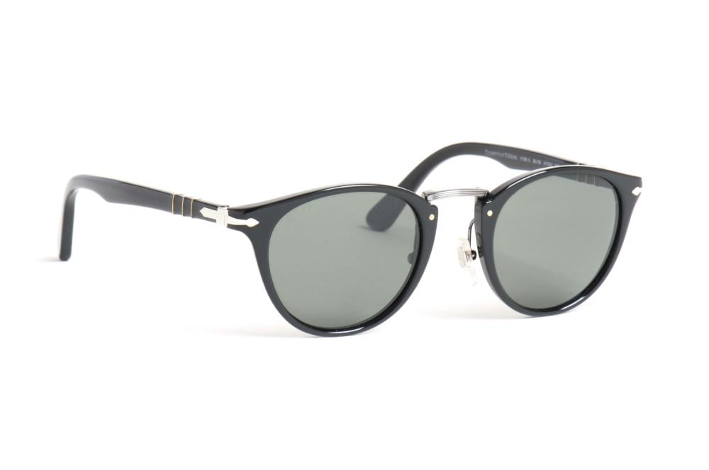 نظارة بيرسول رجالية شمسية دائرية سوداء بعدسات خضراء – Persol PO3108S 95/58